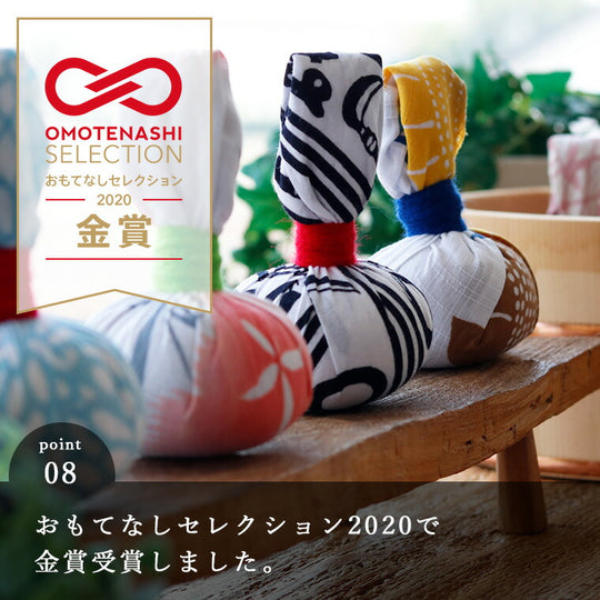 それらを包み込んでいる様々な柄の布は日本の伝統である浴衣生地。浴衣は平安時代に貴族たちが入浴の際に着用した着物である「湯帷子(ゆかたびら)」がはじまり。気持ち良いお風呂時間と一緒に、日本の伝統文化にも触れられるのも、浴玉の特徴です。