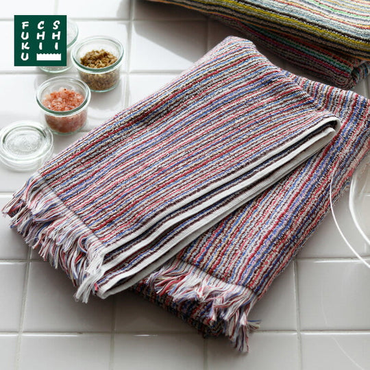 ギュッと詰まったタオルの目は規則正しく並び、七福タオルの技術力を目と肌で感じることができ、その独特な風合いは耐久性に優れているので10年は使えるでしょう。