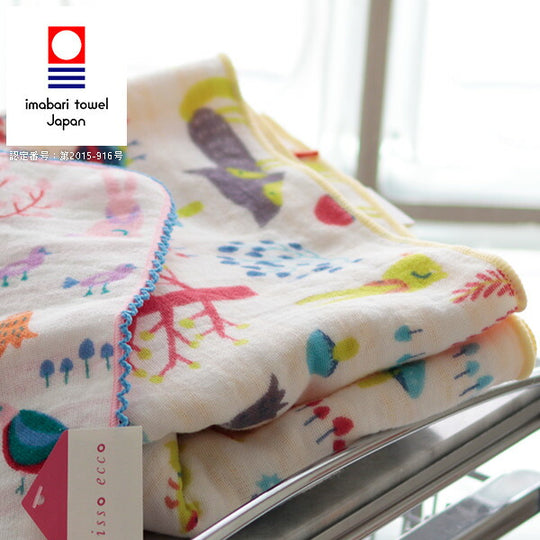 森の中にはお花にキノコ、動物がいっぱい。絵本の中に迷い込んだような「もり」のバスタオルです。