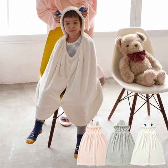 フード付きなので、濡れた髪に被せておくだけで、水をぐんぐん吸い取ってくれます。